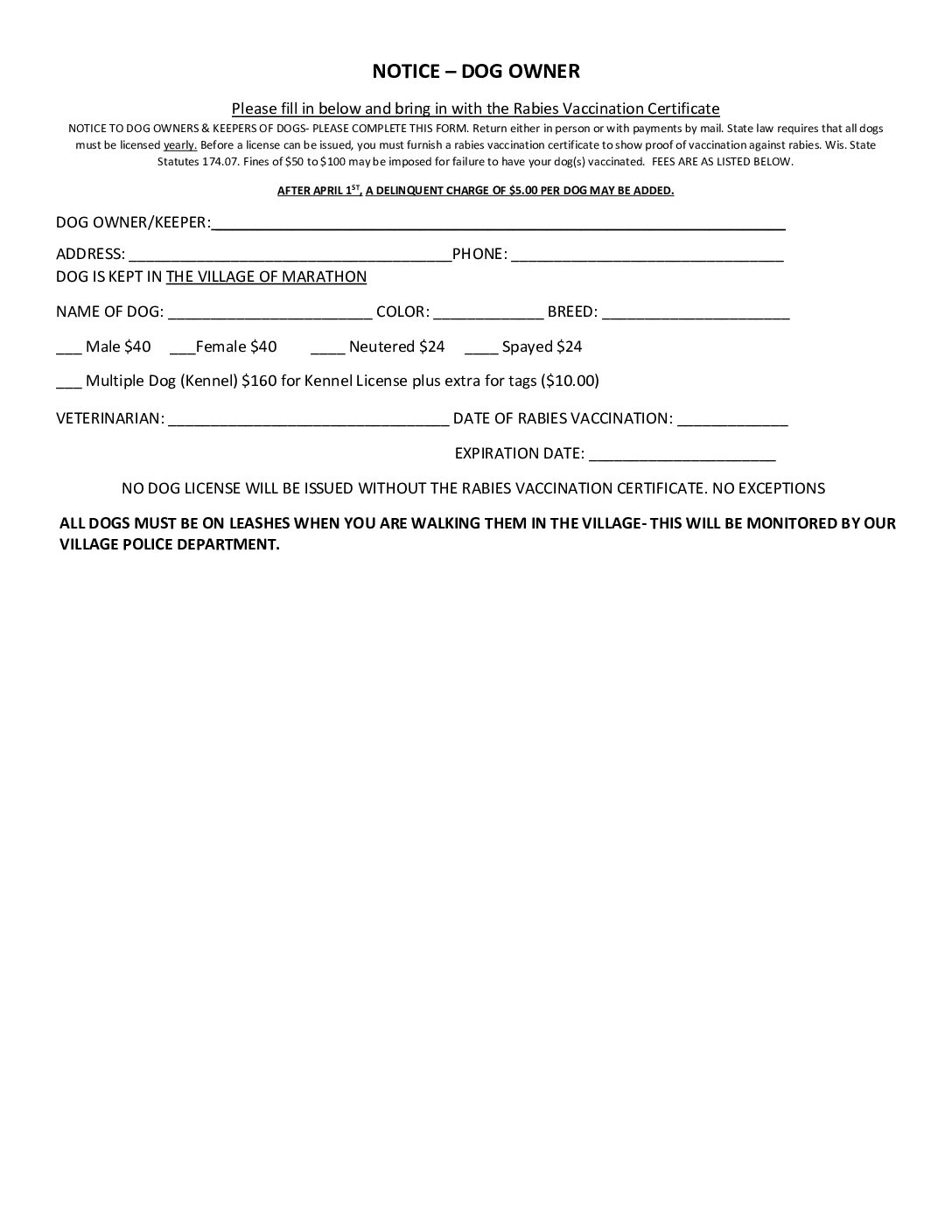 DOG LICENSE Aug 18, 2025 Download Filename: DOG-LICENSE-FORM.pdf File Type: pdf File Size: 84 KB Categories: Forms