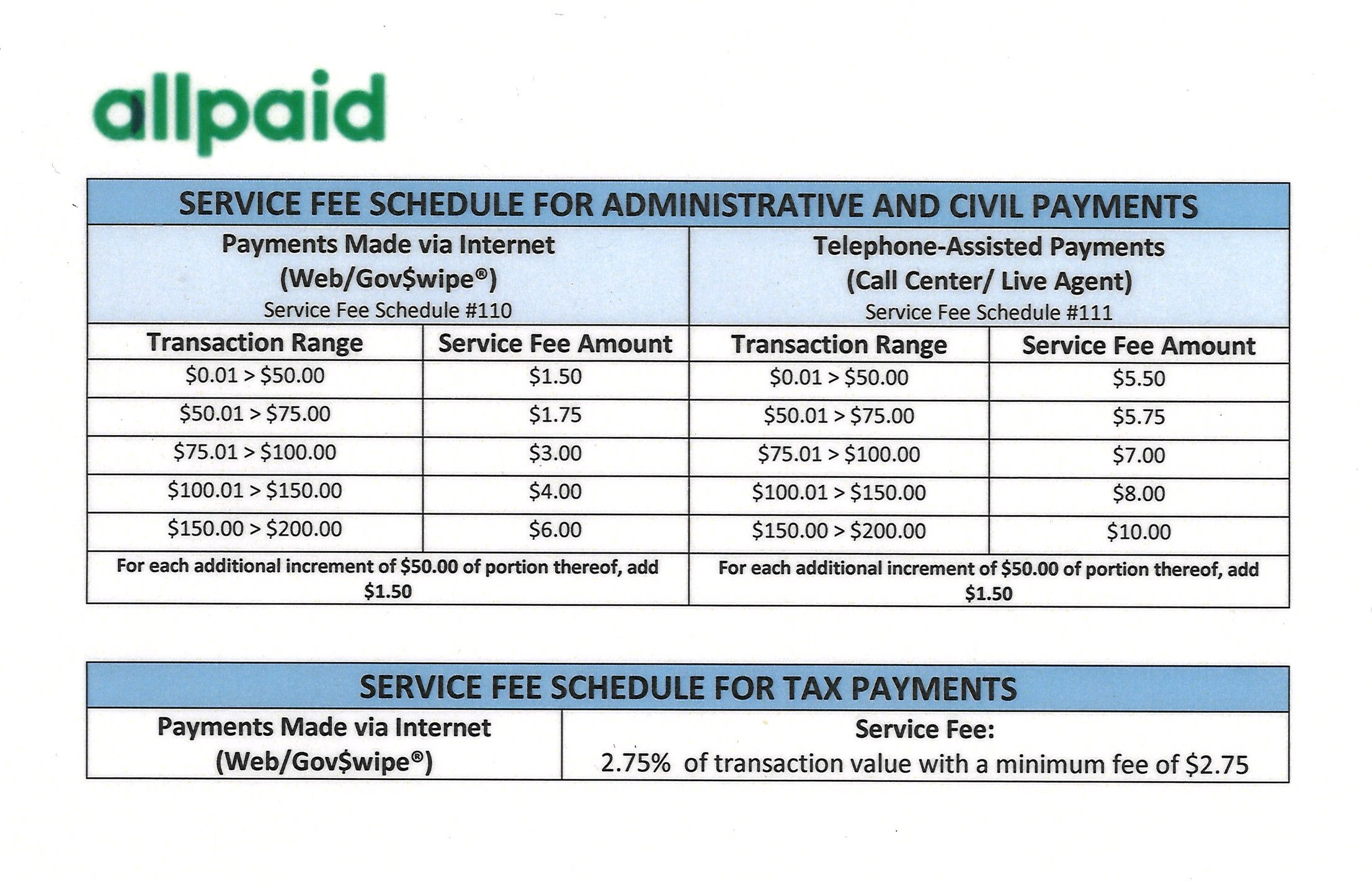 This payment link is only for Property Taxes to the Village of Marathon City. Please review the Tax Payment Fee Schedule for more information.